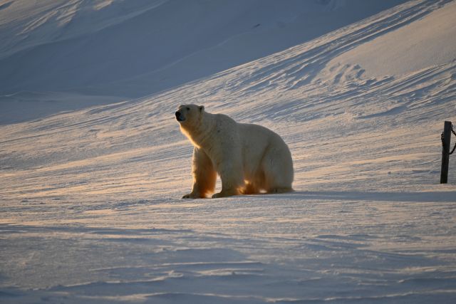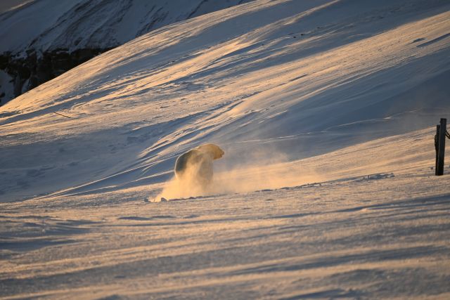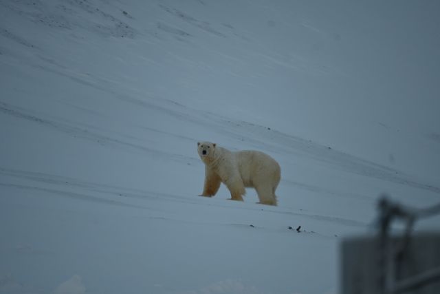 Det kan virke som at både tobente og firbente liker å dra ut på tur på søndager. I dag tidlig før kl 7 dukket de første fire isbjørn opp ved stasjonen. 2 kom nordfra og ut på isen, en lå ute på isen og en to-åring kom ned ved helifuelbygget. Hundene varslet om alle isbjørnene. Den siste isbjørnen, to-åringen, ble skremt av gårde med et par skudd med signalpenn. Den gikk opp på Antennesletta og muet og åkket seg. Vi har mistanke om at den nettopp er blitt jaget vekk av sin mor etter to år i hennes trygge omsorg.