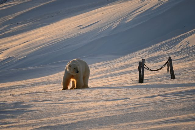 Knoll varslet om isbjørn og fulgte med om den skulle komme inn til stajsonen igjen.