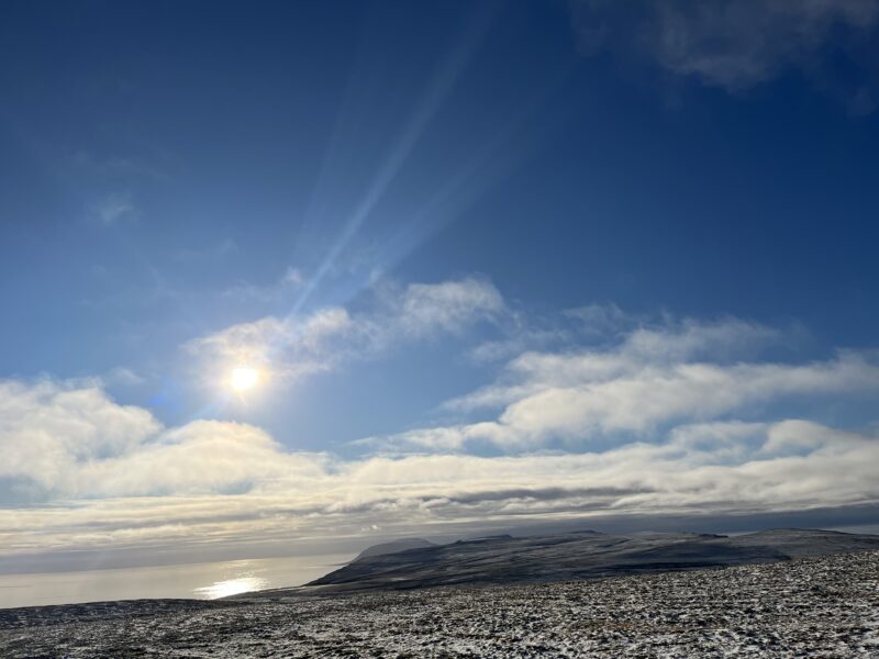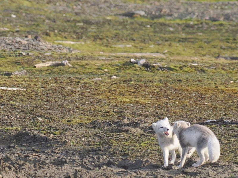 Reveungane leiker rundt oss. Dei trudde Svanhild òg ville være med på leiken, men ho syntes ikkje det var så gøy å ha to-tre rever etter seg, så no har ho flytta til Sørhytta.Vi har hatt eit par dagar med fint vêr no. Frost i bakken så da er det litt enklare å gå over dei blaute områdane. Ole-Martin har hatt ei natt på Sørhytta, Helge ei natt på Beisarstua og Jens Helge ei på Johshytta. Erland har nytta dei vindstille dagane til å legge tak på Reserven.