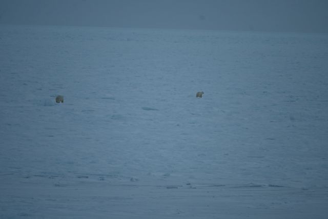 Ved 11.30 tiden varslet hundene oss om at en liten isbjørn kom inn mot stasjonen fra Båtstranda. Det ble sendt avgårde skremmeskudd og den gikk ned på isen og gikk sørover forbi stasjonen et stykke før den la seg ned på isen for å hvile. En time etterpå skulle Terje kjøre med traktoren bort til brennkaret på Båtstranda og da reise en stor bamse seg opp og gikk ned på isen. Den fulgte sporet etter den første og de møttes ute på isen sør for stasjonen. Der la den seg ned mens den minste kom inn mot helikopterlandingsplassen men fikk opp på Antennesletta. Den kom ned igjen etter en time og lot seg skremme med tilsnakk og litt smell. De ruslet begge sørover på isen.