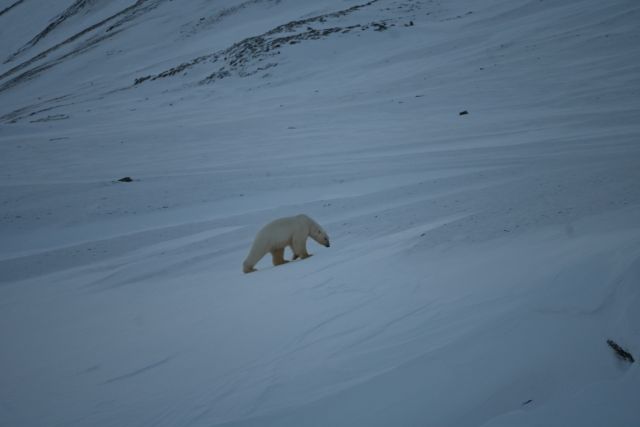 Knoll varslet om isbjørn og fulgte med om den skulle komme inn til stajsonen igjen.